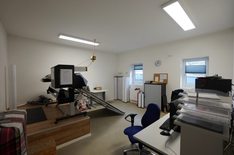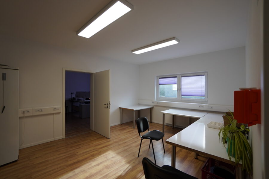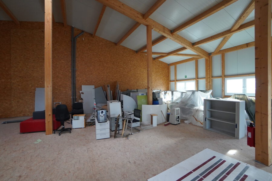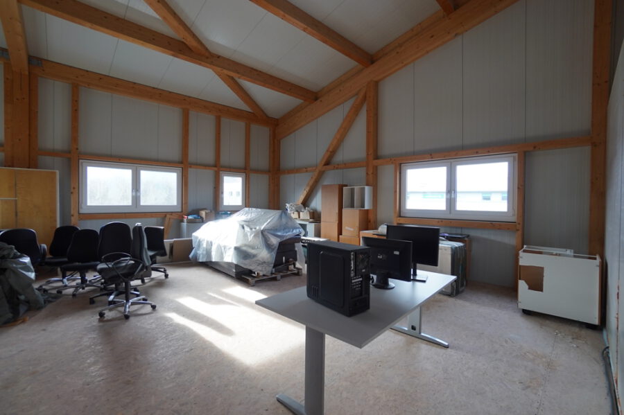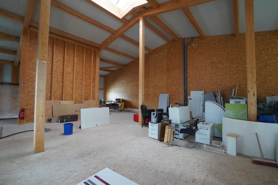 Die Anlage ist vielseitig verwendbar da große Bürokapazitäten sowie Lagerräume oder Produktionsräume und auch ein sehr hohe Halle vorhanden sind. Eine ebene Freifläche welche zum Teil gepflastert ist gehört auch mit dazu. Auf einem Teilbereich kann evtl. noch zusätzlich gebaut werden.