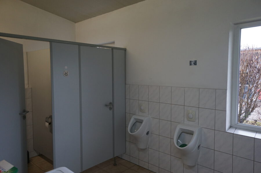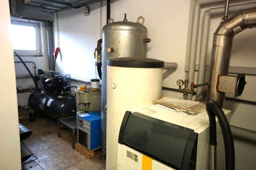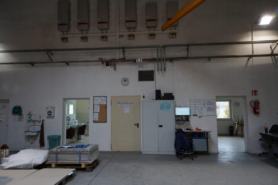 Die Haupthalle verfügt über eine Fußbodenheizung. Starkstromanschluß in großer Stärke vorhanden.