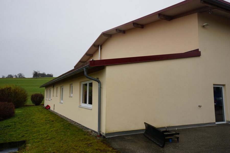 In einem Gewerbegebiet gelegen. Zur BAB München-Salzburg, Anschluß Prien am Chiemsee nur 15 Autominuten. Bahnanschluß Bad Endorf in nur 5 Minuten erreichbar.