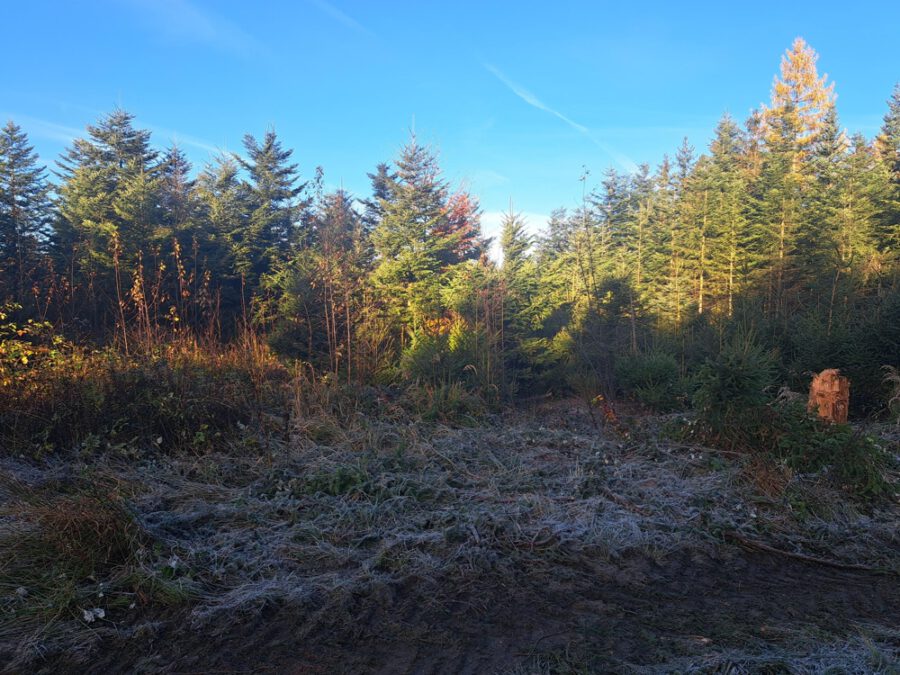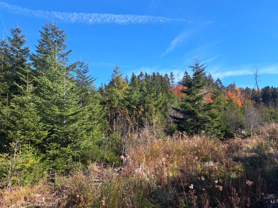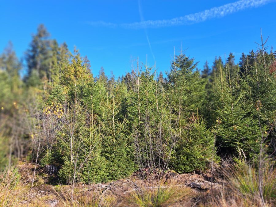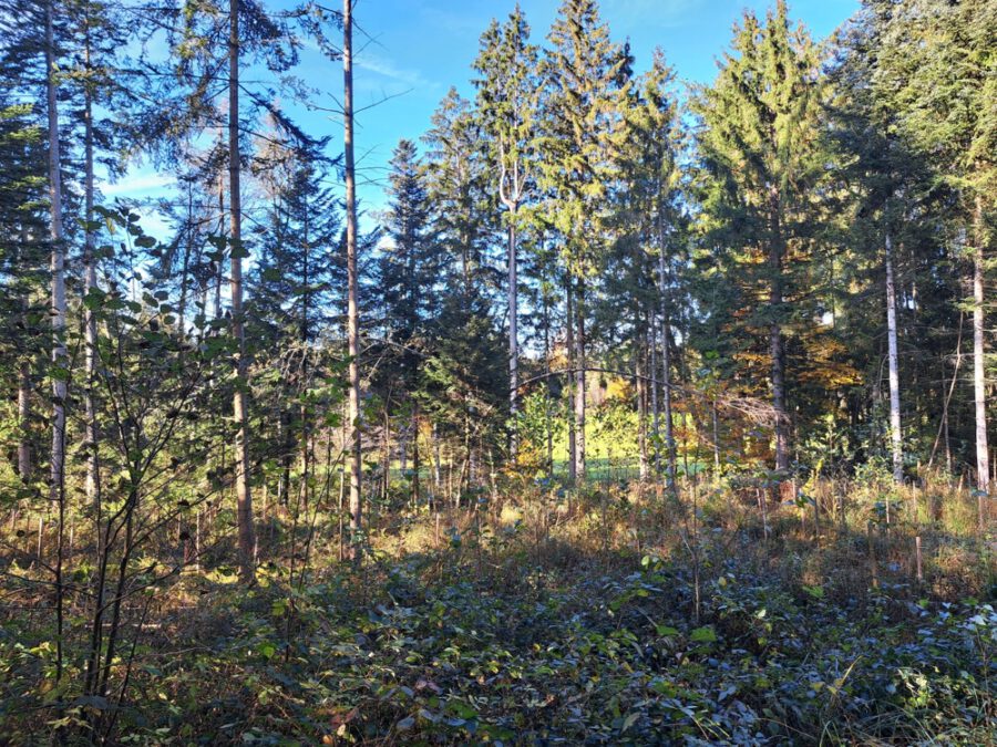 Das trapezförmige Waldgrundstück ist von drei Seiten umschlossen von anderen Waldgrundstück. Mit einer Seite ist im Westen eine Wiese anliegend. Überwiegend neu angepflanzter Mischwald mit Eichen, Ahoren, Tannen, Douglasien, Lärchen und Buchen. Auf einem Teil steht auch noch ein mittlerer Fichtenbestand. In der Mitte des Grundstückes befindet sich eine Fahrt, wie auch an der östlichen Seite.