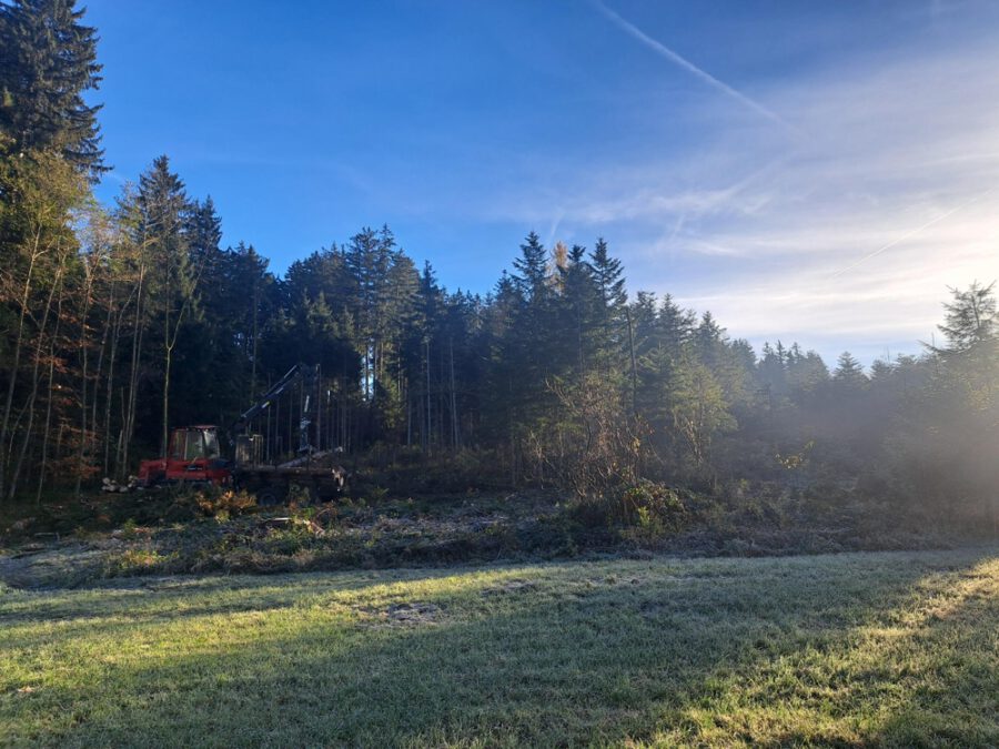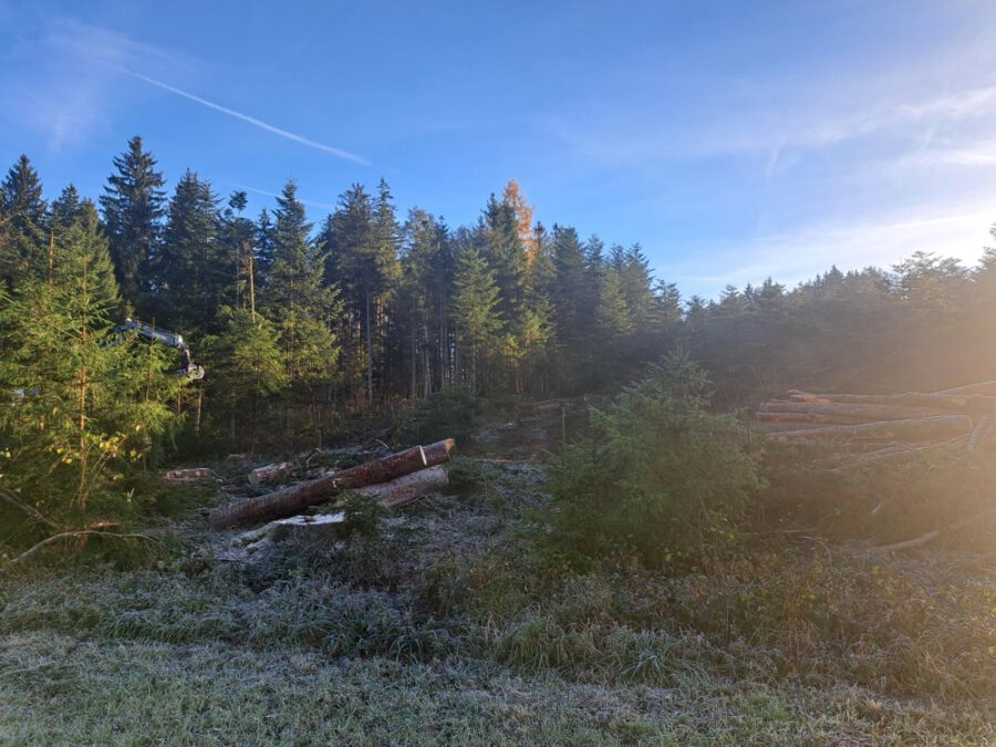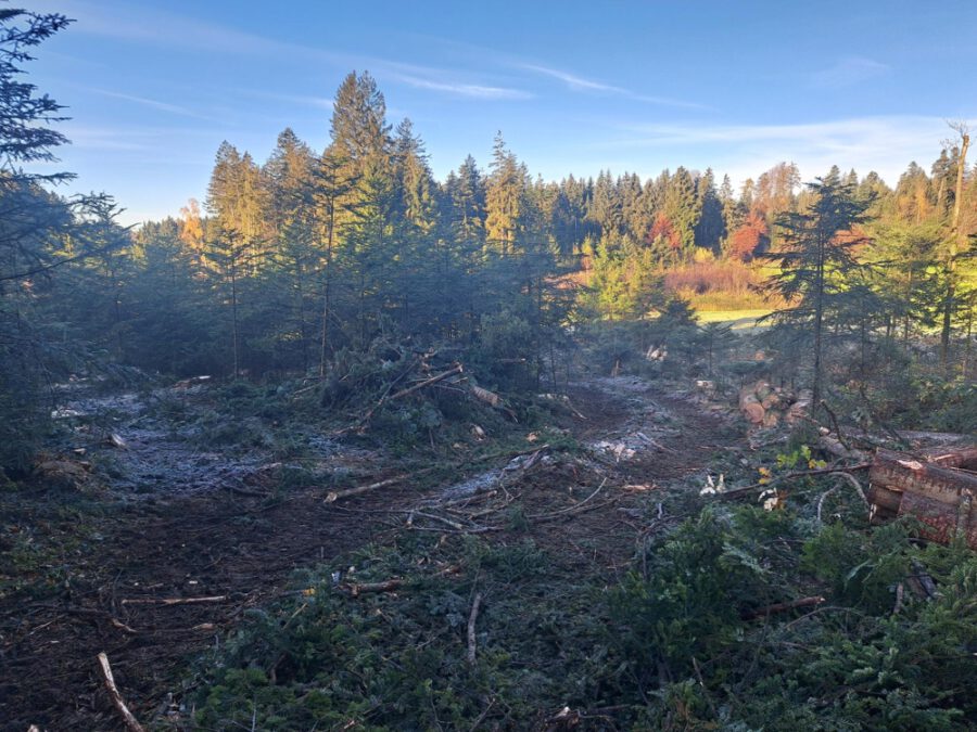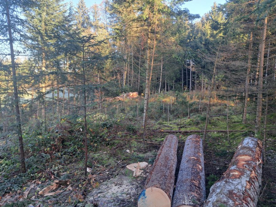 Um Sturmschäden vorzubeugen wurde aktuell der große Bestand geschlagen und abtransportiert. Auch mit dem Nachbarholz wurde gleich verfahren.