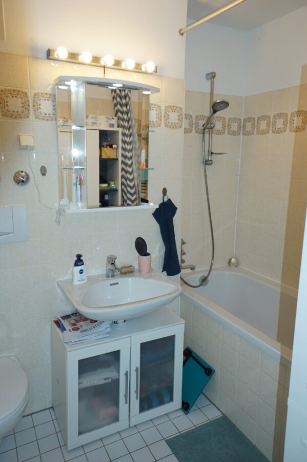 In der Nähe des S-Bahnhofes in Baldham liegt dieses Apartement im 2.Stock eines 30 Parteienhauses. Die alleine lebende Mieterin pflegt die Wohnung sehr gut. Drei Häuser bilden eine Verwaltungseinheit. Fünf Wohnungen befinden sich auf einem Stockwerk. Die Wohnung besteht aus Gaderobe, einem innenliegenden Bad mit Wanne. Einer kleinen Küche mit Fenster (die Einbauküche gehört dem Eigentümer) sowie dem großen hellen Wohn-und Schlafraum von dem aus eine Türe auf den Balkon führt. Dieser ist nach Süden hin ausgerichtet.