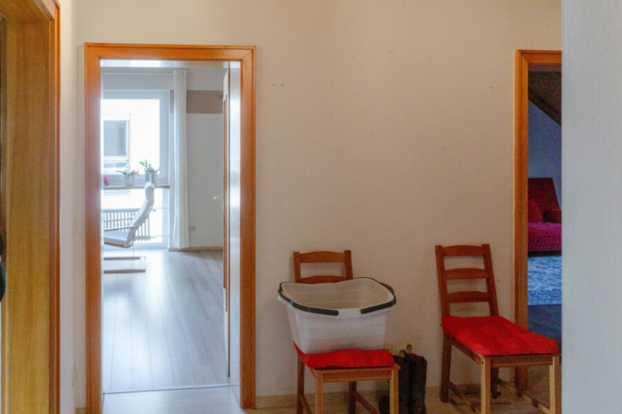 Eine sehr gepflegte vier Zimmerwohnung kommt in diesem gut erhaltenen Mehrfamilienhaus zum Verkauf. Acht Parteien wohnen hier. Sie liegt im Dachgeschoß mit einer zusätzlichen Galerie. Vom Wohnzimmer aus ist diese zu erreichen. Dies verleiht der Wohnung einen sehr großzügigen Touch. Von der großen Diele aus sind das Bad sowie zwei Schlafzimmer und das Wohnzimmer zu begehen. Die Raumhöhe ist überhoch. Die nach Süden ausgerichtete Küche besitzt eine Loggia die nach Süden weist.