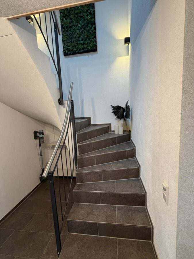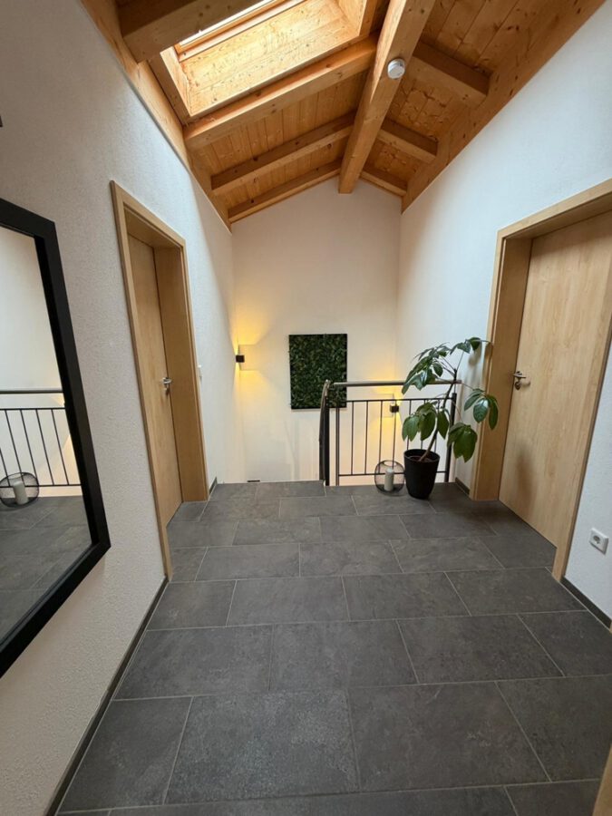 Die Wohnung liegt im 1.Stock und Dachgeschoß. Im 1.Stock befindet sich auch noch ein kleines Appartement mit eigenem Eingang. Große Wohnküche mit Südbalkon. Sowie ein Gäste-WC. Im Dachgeschoß befinden sich das großzügige Bad sowie drei Schlafzimmer und ein Büroraum.
